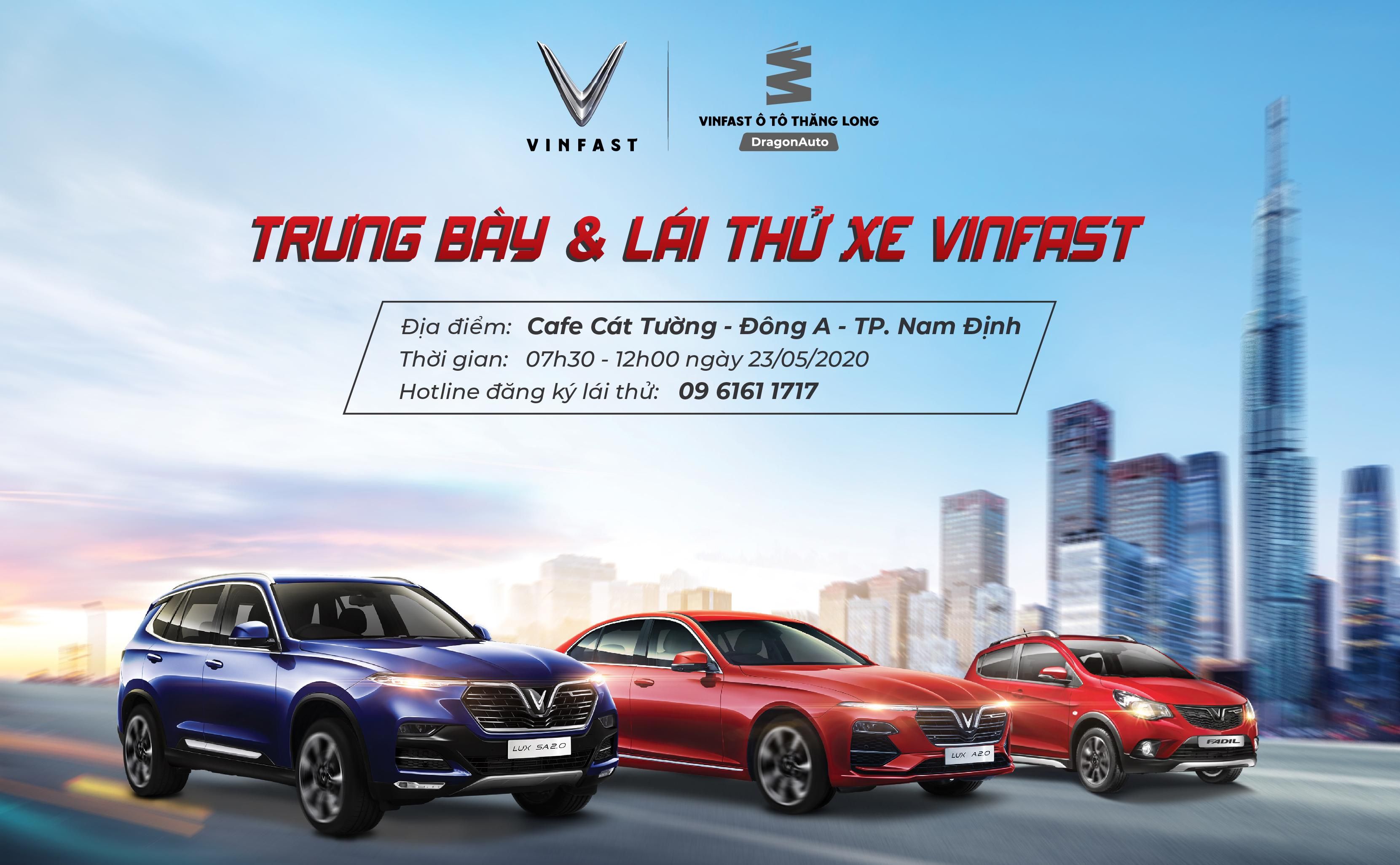 VinFast Ô tô Thăng Long - DragonAuto đã sẵn sàng hành trình trở lại TP. Nam Định với sự kiện "Trưng bày và lái thử xe VinFast" duy nhất Tháng 5 và chương trình siêu ưu đãi mua xe VinFast chưa từng có